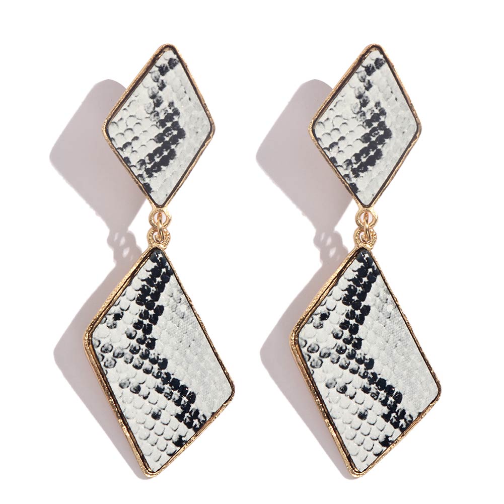 Rectangular Snakeskin Faux Print Dangle Earrings