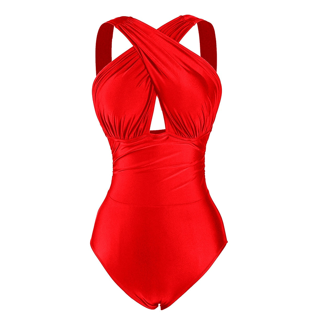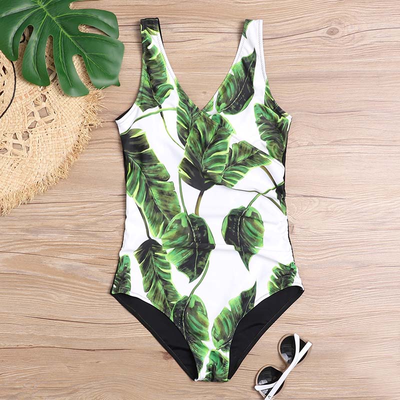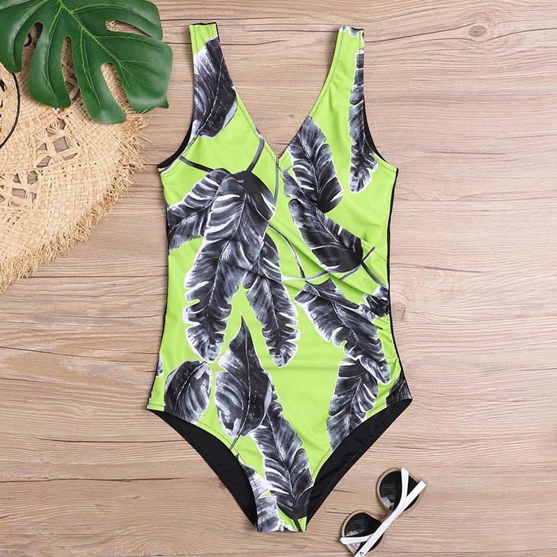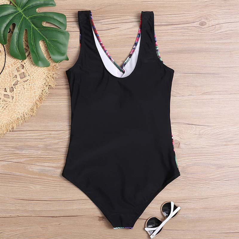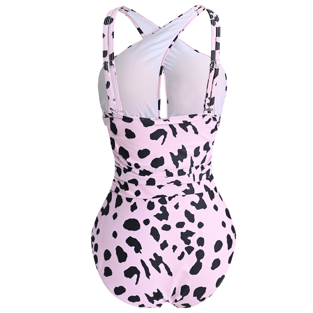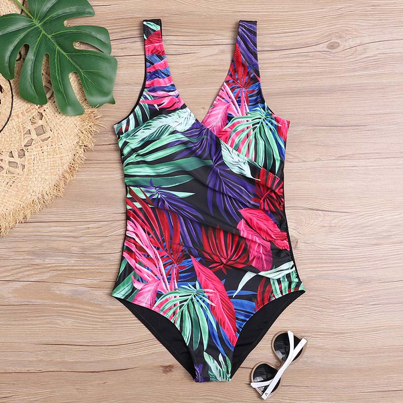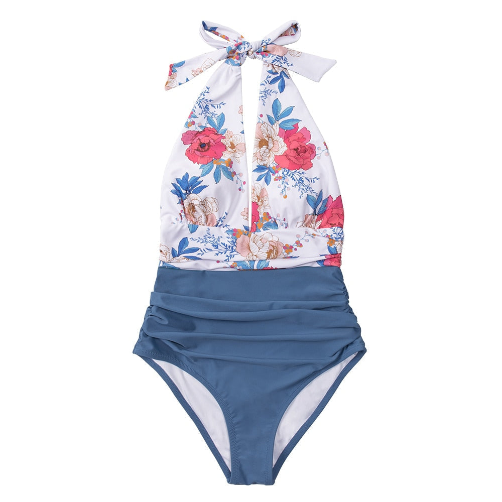 Dark Mauve Floral V-Neck Backless Swimsuit