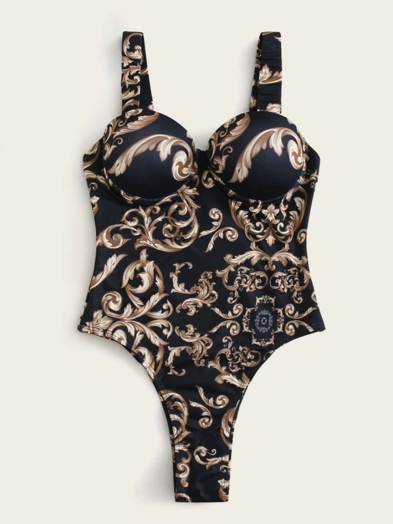 Baroque Pattern Bodice Thong Swimsuit
